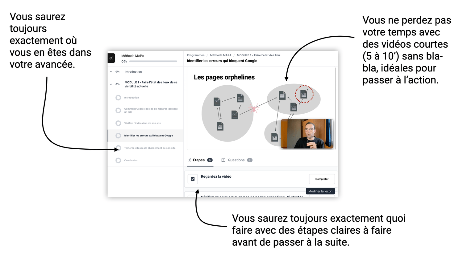 Chaque étape est expliquée simplement, et je vous accompagne en vidéo chaque semaine sur votre site pour que vous sachiez exactement quoi faire.